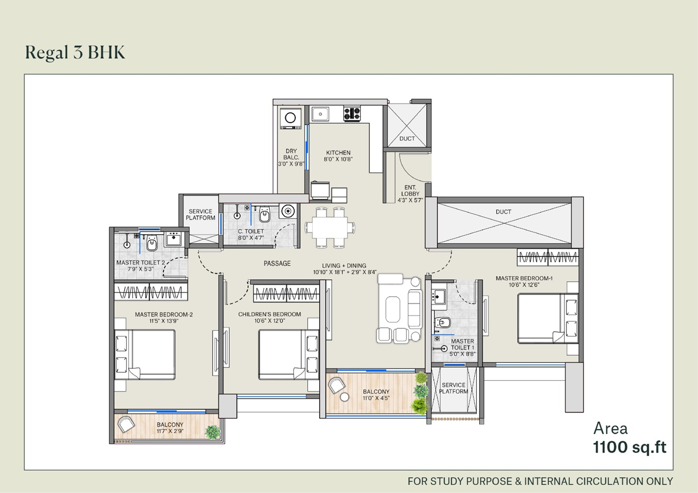 | Regal 3 BHK | 1100 Sq Ft | ₹ 1.39 Cr Onwards | |
