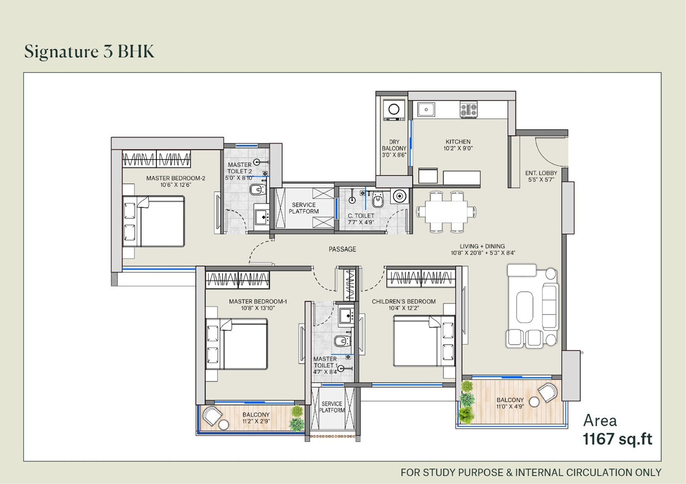 | Signature 3 BHK | 1167 Sq Ft | ₹ 1.47 Cr Onwards |